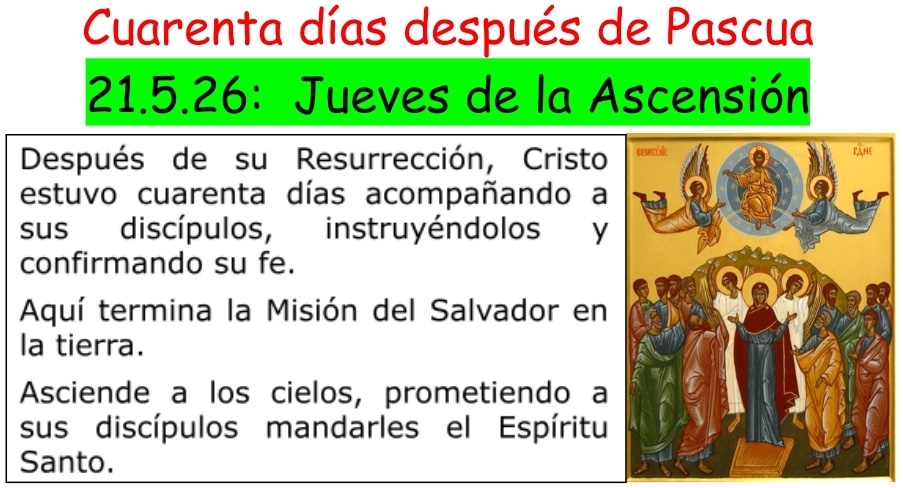 Llegando esta Fiesta de las Fiestas, la iglesia nos sigue acompañando en el período de 50 días, que culmina con Descenso del Espíritu Santo a los Apóstoles en Pentecostés.