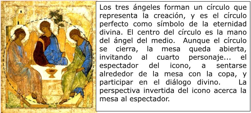 El icono de Rublev no muestra movimiento ni acción... Pero está lleno de símbolos teológicos: