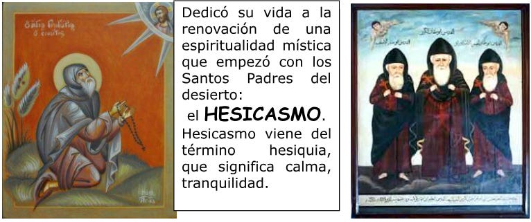 Desde su cuna en el desierto de Egipto, se expandió el hesicasmo a Sinai, al Monte Athos, a los monasterios hasta nosotros.