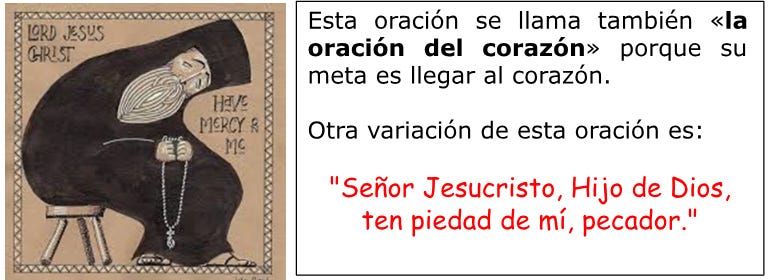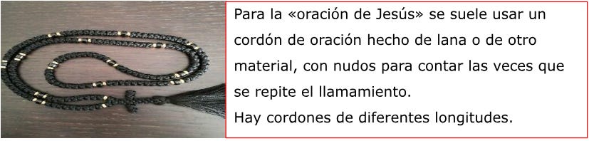 La oración de Jesús se puede hacer en completo silencio, excluyendo cualquier otra actividad como lo hacen los monjes y monjas y /o integrándola en nuestra vida cotidiana para levantar el alma y unirnos a Dios en todo tiempo.