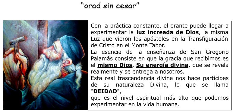 Esta oración tranquila, sencilla, humilde y continua, es la puerta que abrimos para que a través del Espíritu Santo recibamos la gracia divina y nos re-unamos con la naturaleza divina…. la deidad.