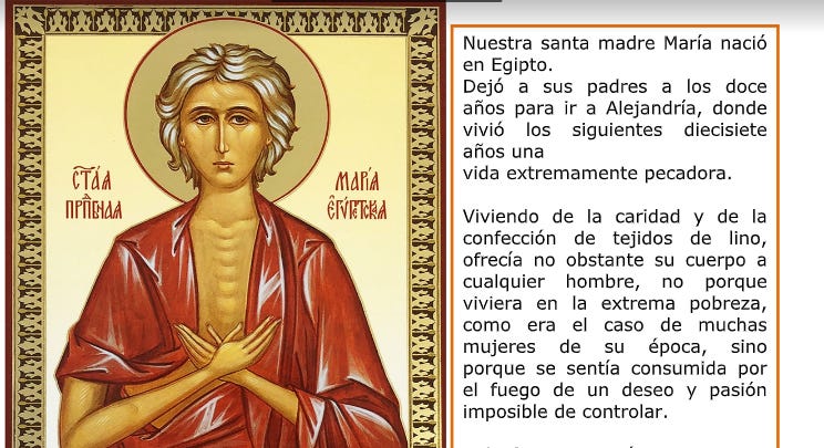 Santa María Egipciaca (344-421), es el maravilloso ejemplo para recapacitar sobre este arrepentimiento en Cuaresma…. la auténtica conversión que cambió su vida.
