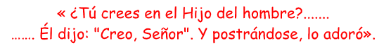 «Creo, Señor», afirma gozoso el ciego de nacimiento, haciendo testigo de la obra de Dios. Esto es lo que necesitamos ahora: no predicadores que llenen las iglesias de palabras, sino testigos que contagien, aunque sea de manera humilde, su pequeña experiencia del evangelio.