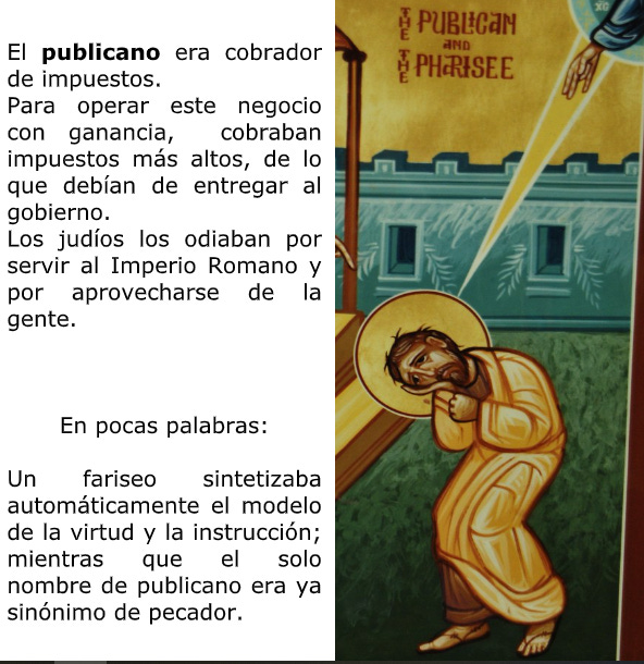 Jesús no nos propone al publicano como un modelo porque es un pecador, sino por su actitud penitente y humilde frente de Dios.