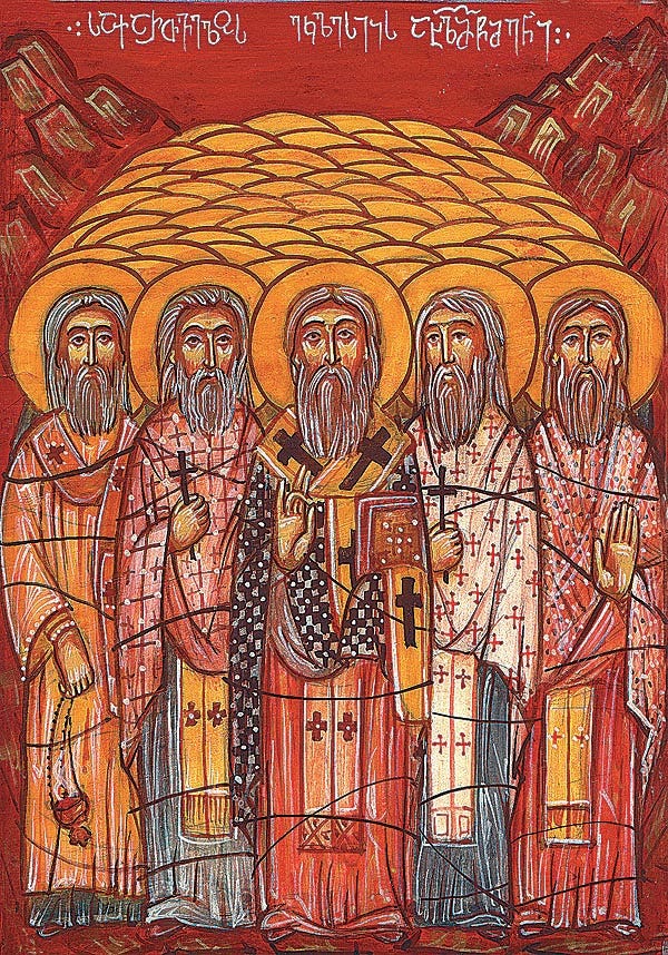 La vida de los Santos: Hieromártir Nazario, metropolitano de Kutaisi, Georgia, con los presbíteros mártires Germán, Hieroteo y Simón, y el archidiácono Besarión (1924)
