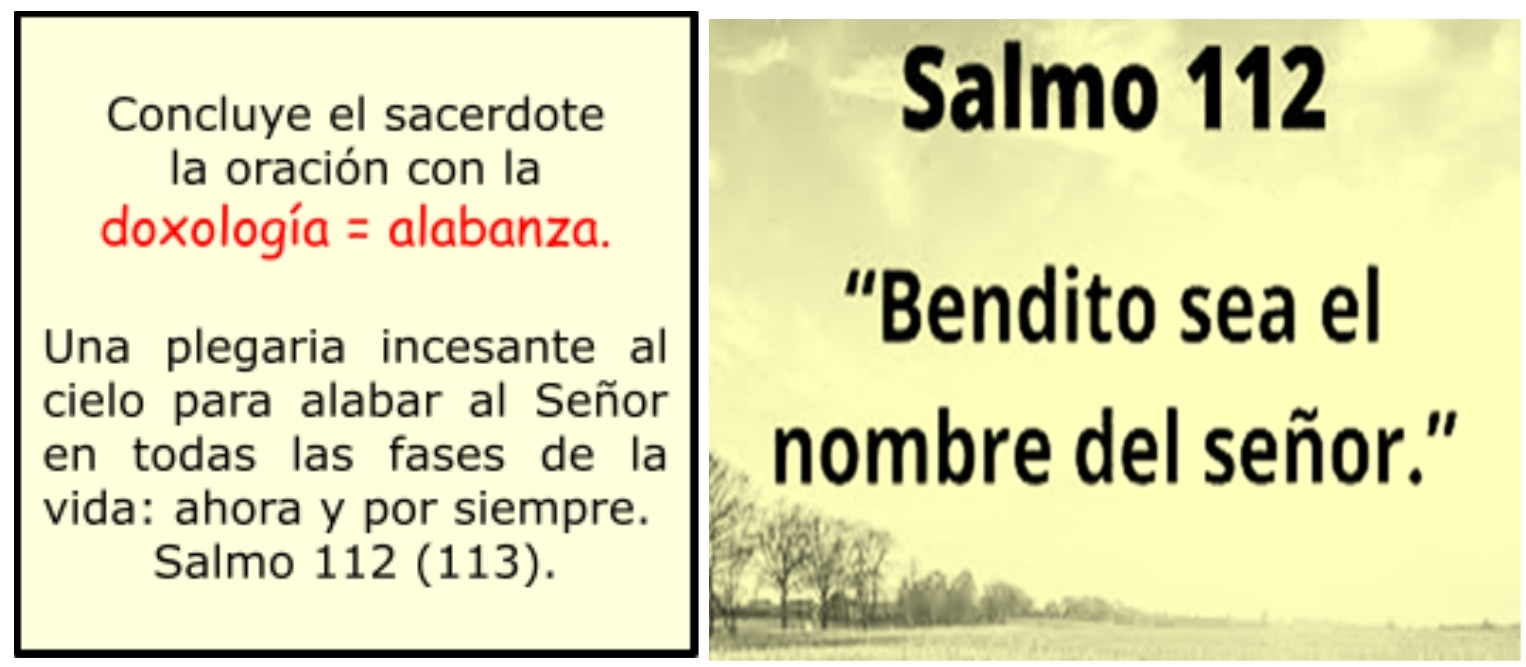 Continúa el sacerdote con las oraciones de gracias, que terminan alabando a Dios de esta forma: