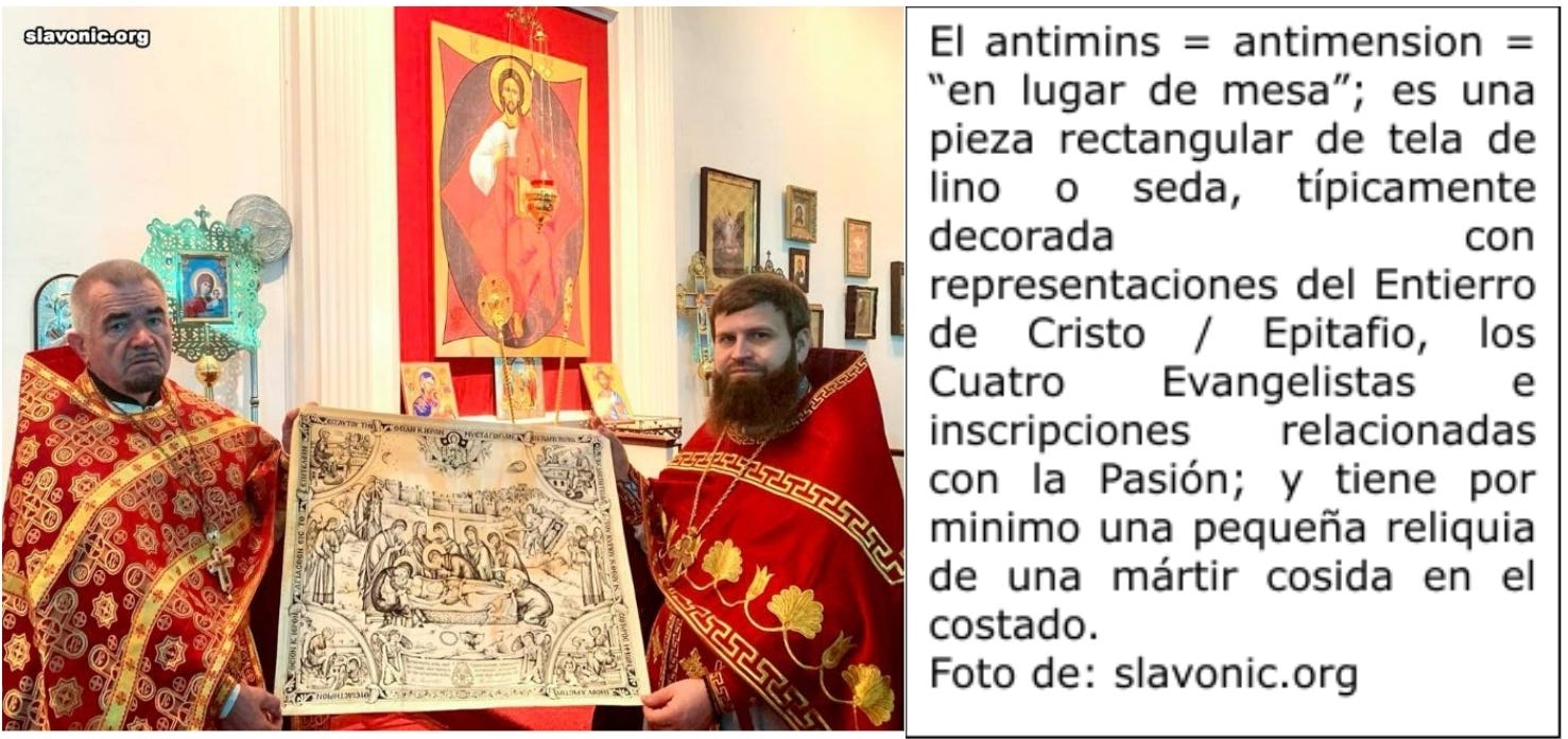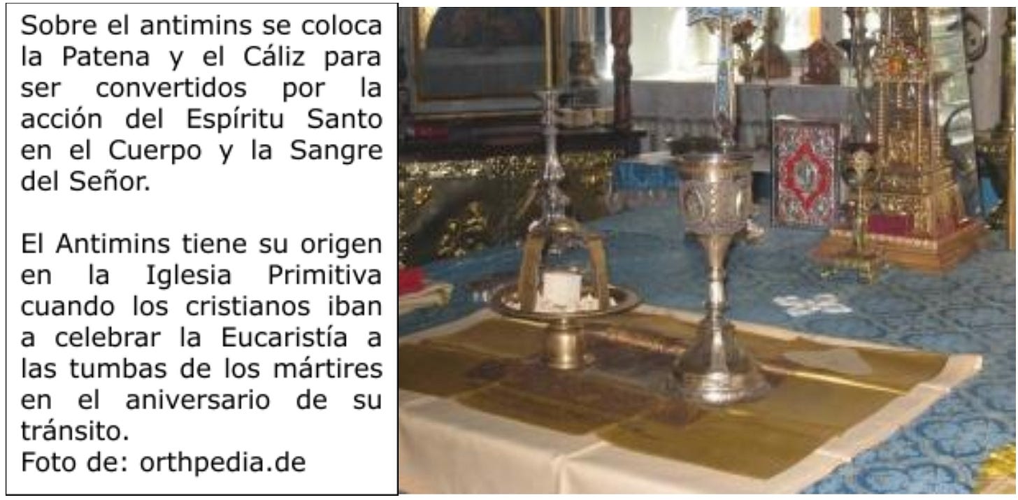 Es en esta letanía cuando el sacerdote, despliega el Antimins sobre el altar.