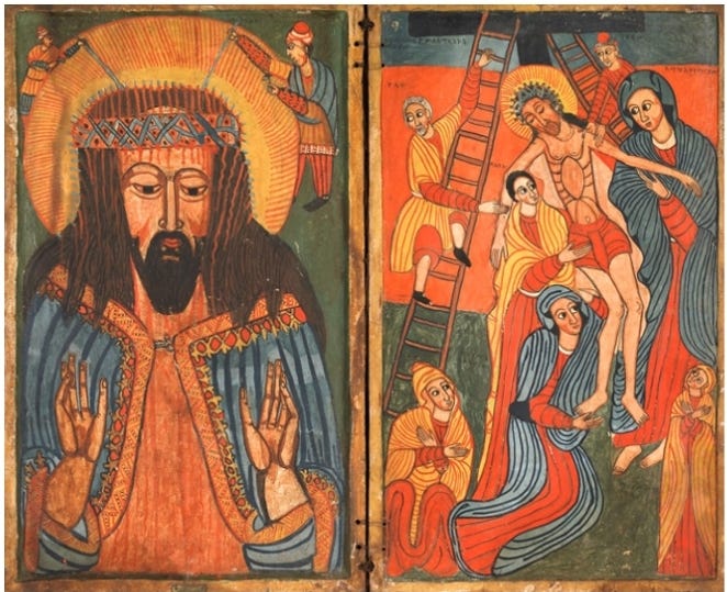Bajada de la Cruz y colocación del epitafio = Colocación en el sepulcro. Las Lamentaciones.