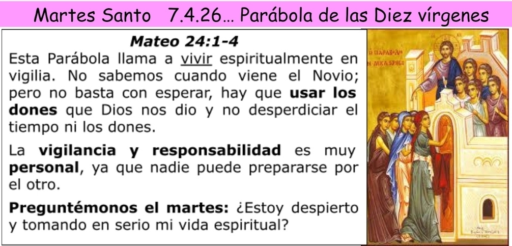 “He aquí el Novio que viene a medianoche; bienaventurado, pues, el siervo que encuentre velando; mas indigno es el que esté descuidado. Cuida alma mía de no caer en profundo sueño, para no ser entregada a la muerte, y arrojada fuera del Reino; mas vela clamando: Santo, Santo, Santo eres Tú, oh Dios, por la intercesión de todos los santos, ten piedad de nosotros”.