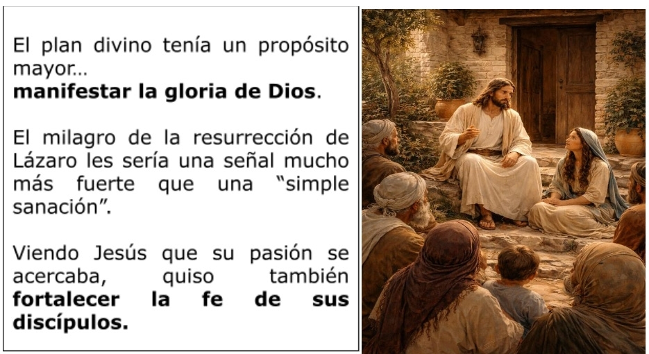 Lázaro, un amigo de Jesús estaba enfermo y cuando Jesús recibió la noticia, los apóstoles y nosotros hubiésemos esperado que iría rápidamente a verlo, pero el Evangelio nos dice en Juan 11: 5-6: